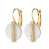 Flotte øreringe fra Dyrberg-Kern i forgyldning med hvid chancerende vedhæng og klare krystaller. Øreringene lukkes med fransk lukning.